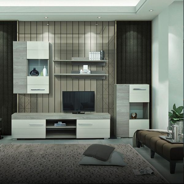 Дневна соба Барселона сив храст/бело сјај