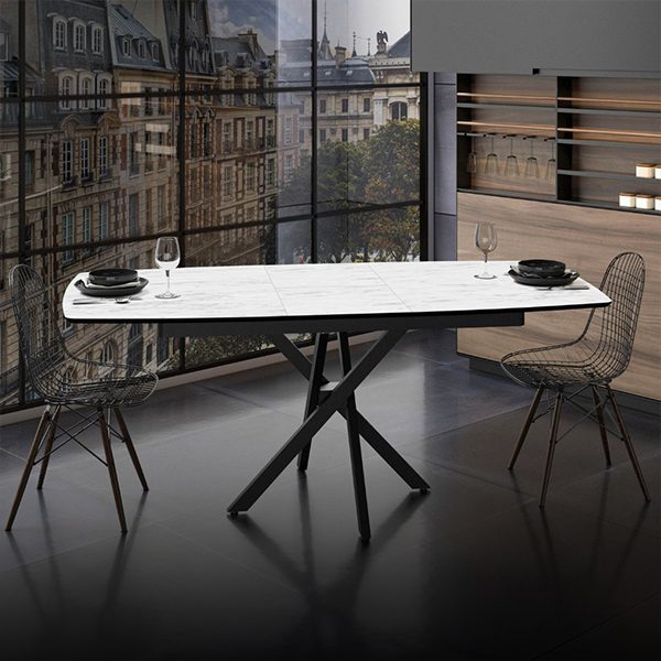 Трпезариска маса Пабло Плус и стол Марк, бел мермер/црно