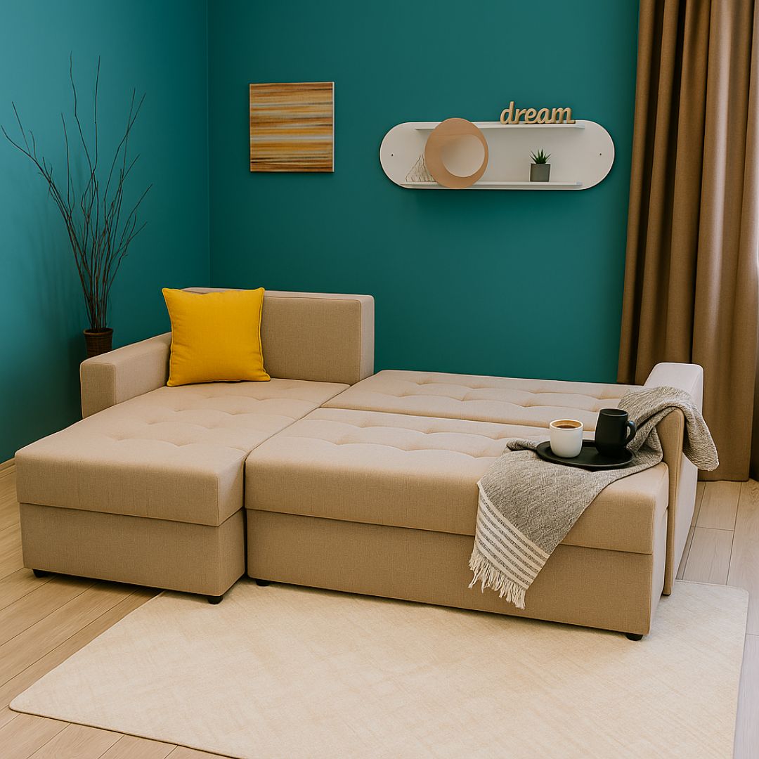 Овој модел располага со кутија за складирање, совршена за постелнина, ќебиња и сезонски предмети, а со едноставен механизам лесно се трансформира во удобен кревет со површина од 190 × 140 см. Совршено решение за гости или секојдневна употреба. Изборот на форма на аголот (лев / десен) и ткаенина од широка палета на бои и текстури ви овозможува да ја персонализирате Беба според вашиот стил и ентериер.