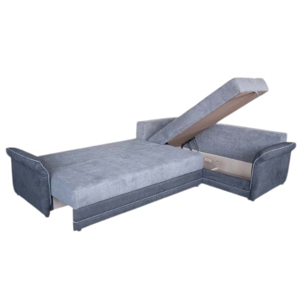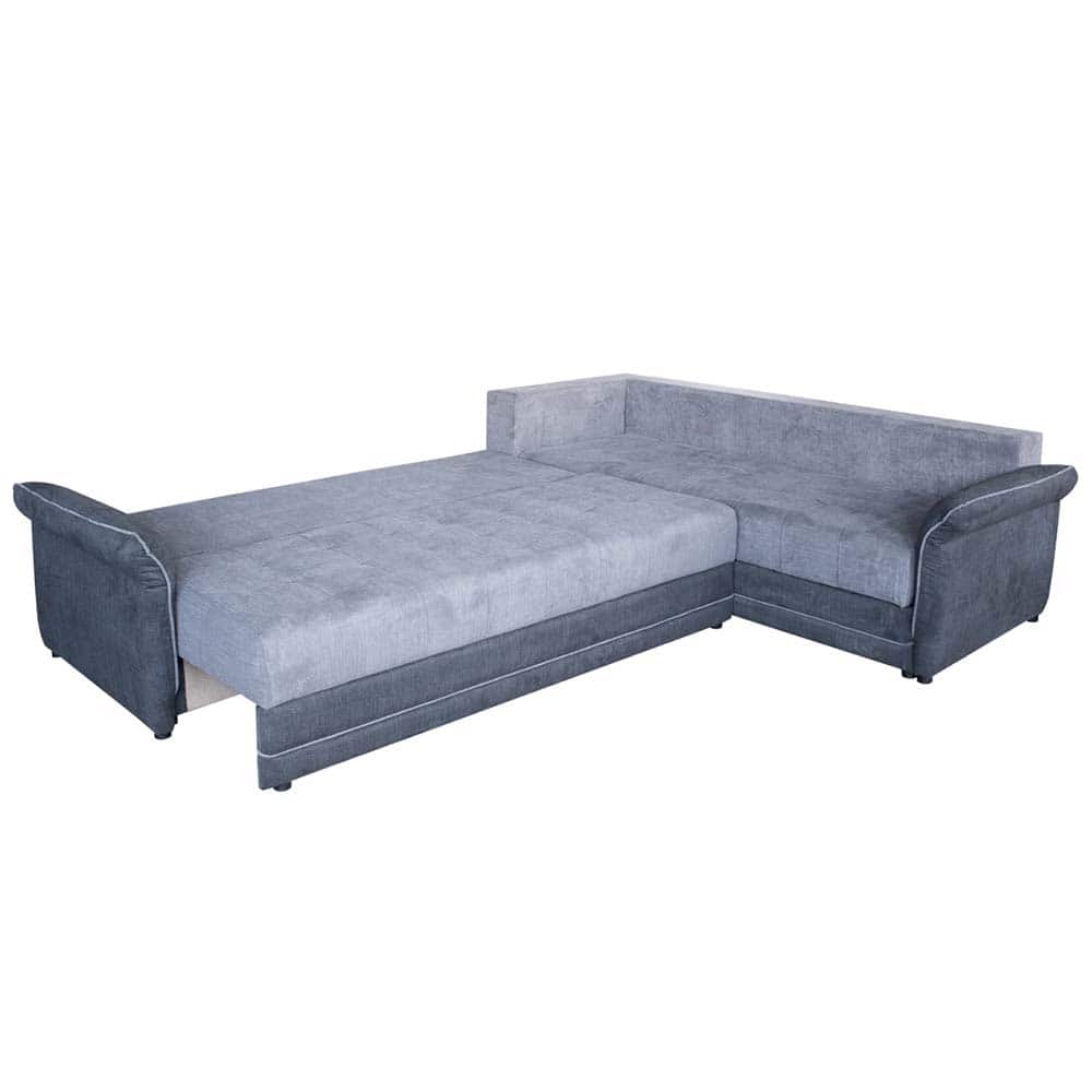 Аголна гарнитура Бени е идеален избор за сите кои сакаат удобност, функционалност и модерен изглед во својот дом. Овој модел комбинира практични решенија со естетски префинет дизајн, создавајќи совршен баланс помеѓу стил и комфор. Гарнитурата располага со две кутии за складирање, идеални за постелнина, перници или други предмети што сакате да ги имате при рака, но надвор од поглед. Благодарение на вградениот механизам за спиење, лесно се трансформира во удобен кревет со површина за спиење од 260 × 145 cm, што ја прави совршена за помали станови или гости