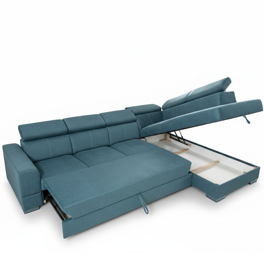 Со елегантни линии и внимателно избрани материјали, оваа гарнитура не само што го разубавува просторот, туку нуди функција за спиење и простор за складирање, што ја прави исклучително практична.