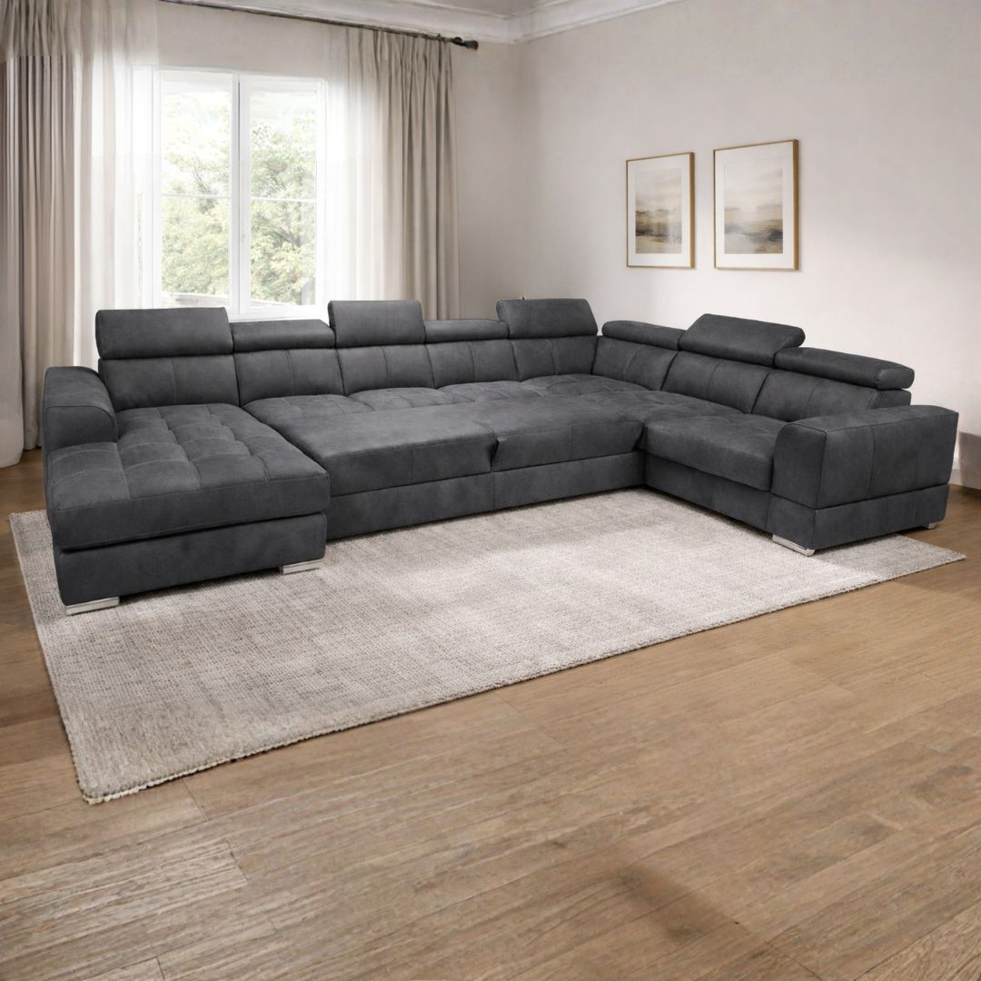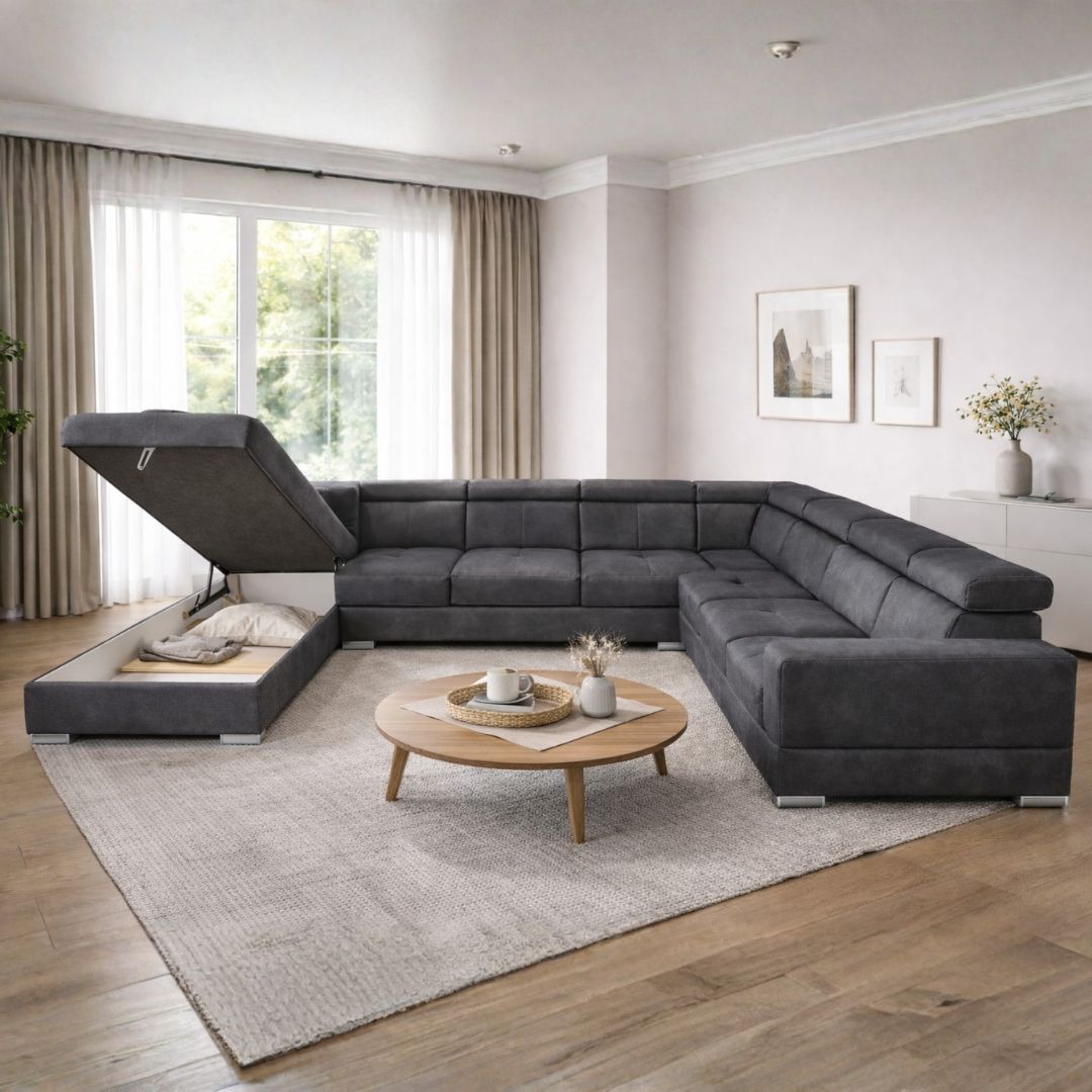 Брисел П е аголна гарнитура во П форма, наменета за оние кои сакаат простор, удобност и модерен изглед во срцето на својот дом. Со својата функционалност и дизајн, совршено се вклопува во големи дневни простории, нудејќи многу повеќе од само седење.
