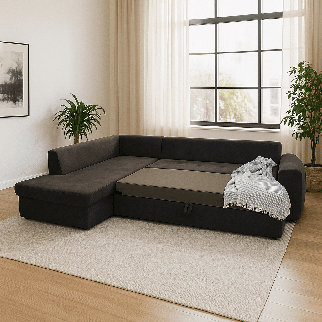- Со едноставен и сигурен механизам, Дрим лесно се трансформира во простран кревет со димензии 240 × 144 cm, што ја прави совршена и за гости и за секојдневно користење.