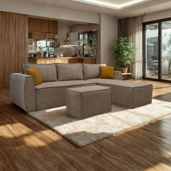 Изберете ја аголна гарнитура Хуго со табуретка – паметен избор за стил, удобност и максимална искористеност на просторот во вашиот дом.