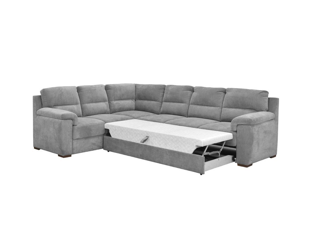 Квин е аголна гарнитура со беспрекорна удобност. Конструкцијата на аголниот сет е изработена со квалитетно дрво од бука и топола. На делот од седиштето се поставени брановити пружини, кои се поврзани едни со други а и поврзани со високо еластична жица, што значително ја зголемува удобноста при седење. Задните перничиња се направени со помош на двокоморен систем за полнење, така што горната комора е исполнета со силиконски топчиња , што ни дава чувство на воздушеста мекост. Покрај тоа што претставува совршеното место за одмор, аголната гарнитура Квин може да се користи и како лежај за спиење. Механизмот на подигнување го трансформира комплетот во просторот за спиење со вкупна површина од 235×123 cm. Се произведува во 2 серии бои на мебел штоф.