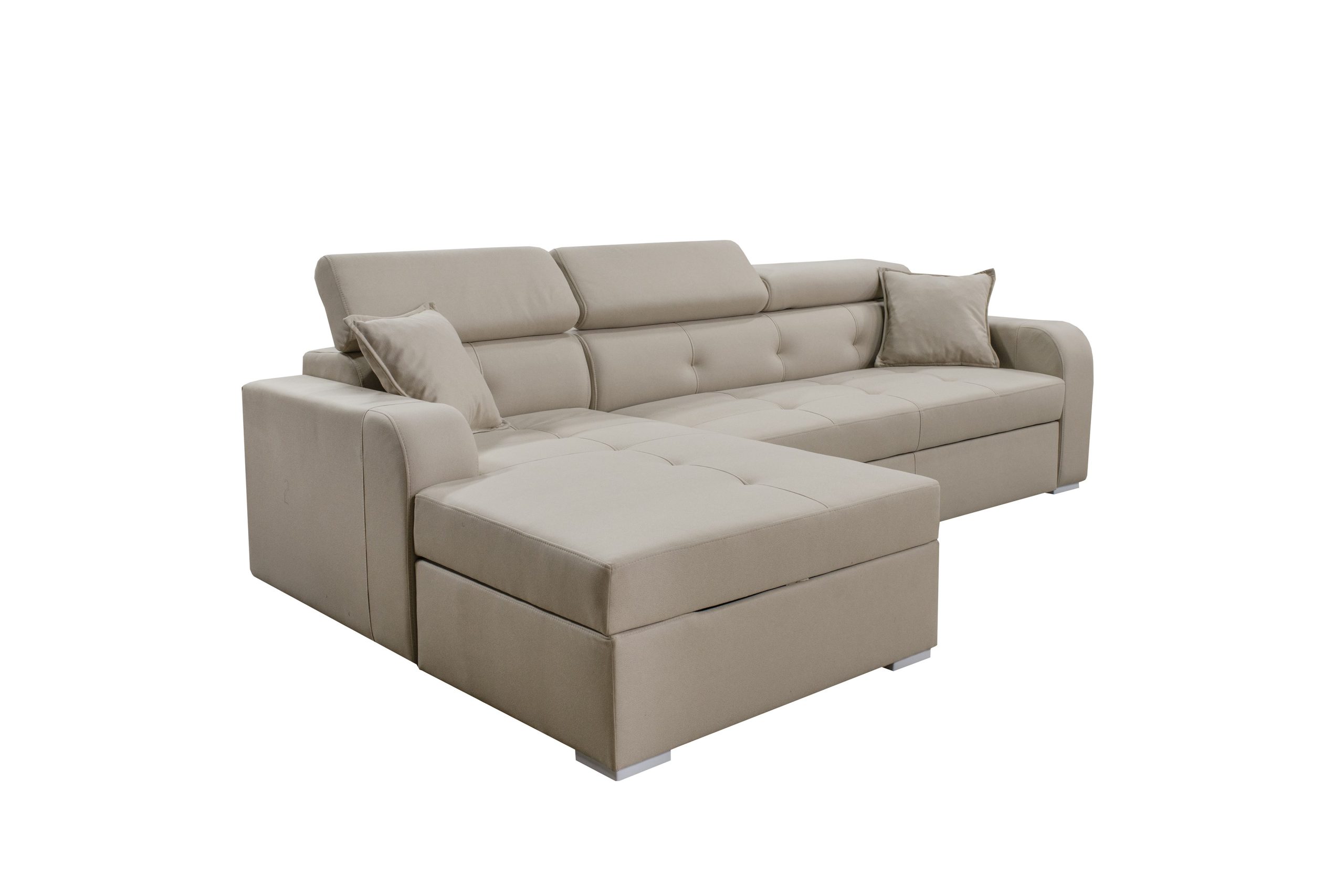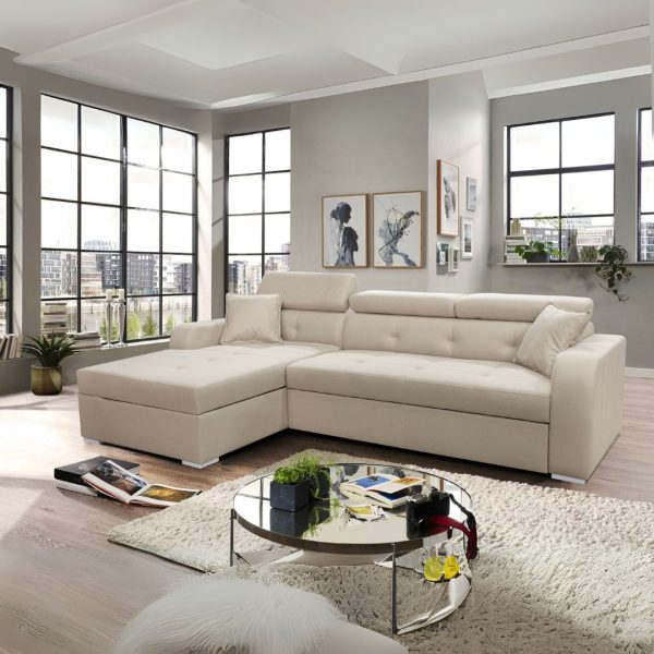 Благодарение на нејзиниот модерен дизајн, оваа гарнитура лесно се вклопува во различни ентериери, а вие го избирате аголот (лев или десен) и ткаенината – достапна во широка палета на бои и текстури.