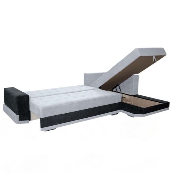 Гарнитурата се трансформира во удобен кревет со само едно движење, благодарение на практичниот механизам за спиење, и овозможува голема површина за одмор.