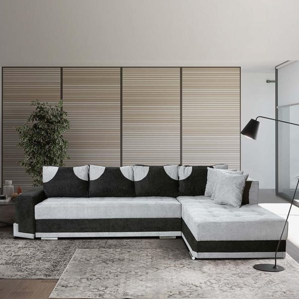 Аголна гарнитура Оаза е спој на стил, комфор и практичност во кој едноставно ќе уживате. Изборот на формата на аголот како и квалитетна ткаенина од широка палета на бои е ваш. Може да се претвори во кревет за спиење со површина од 253×145 цм