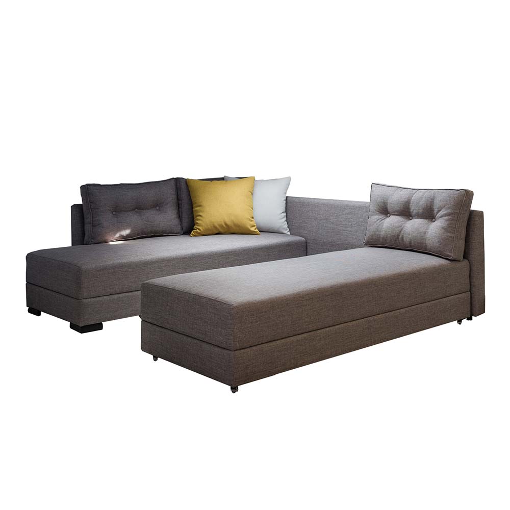 Едноставниот механизам за трансформација овозможува гарнитурата да се претвори во удобен кревет со површина од 260×153 см или, доколку е потребно, да се користи како два единечни лежаи со димензии 200×77 см.
