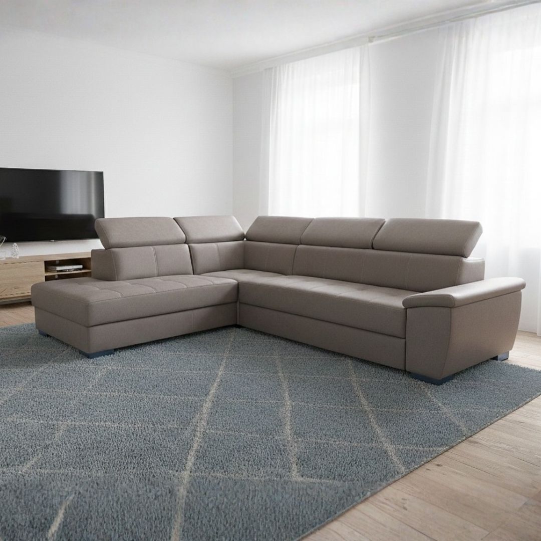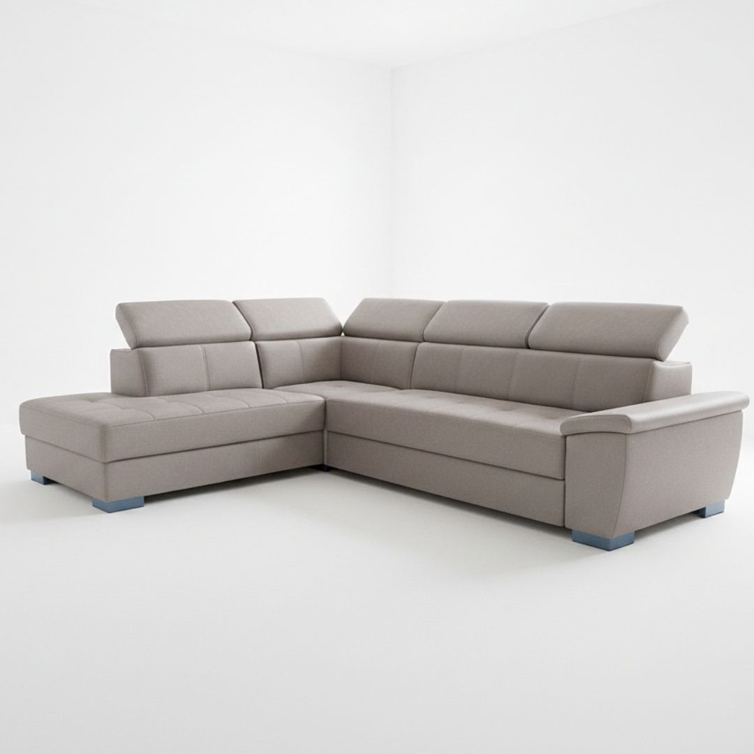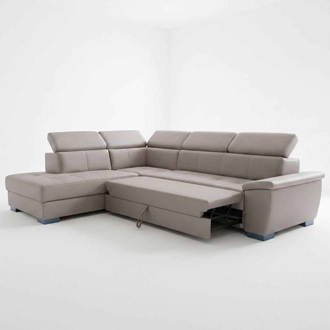 Функција за спиење – лесно се трансформира во удобен лежај 5 потирачи за глава – дополнителна поддршка и прилагодлива удобност Модерен и елегантен изглед – достапна во повеќе бои и ткаенини Пространа и удобна – идеална за семејни дружења и секојдневен одмор Квалитетна изработка – стабилна конструкција од буково и чамово дрво