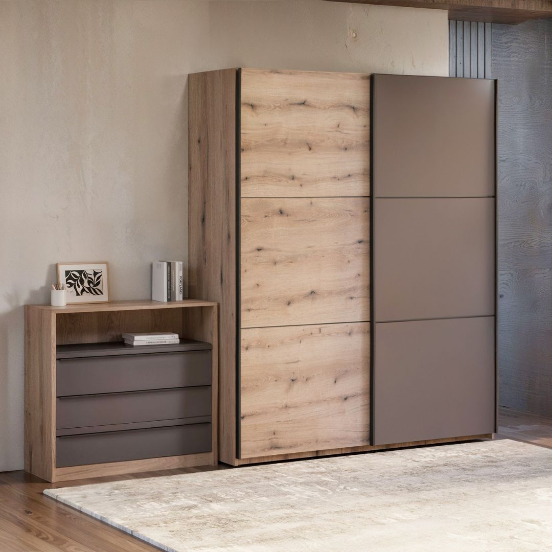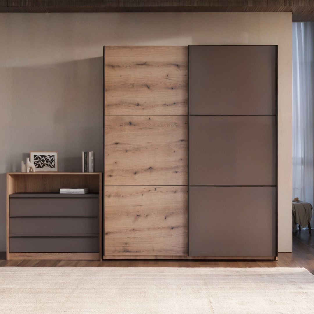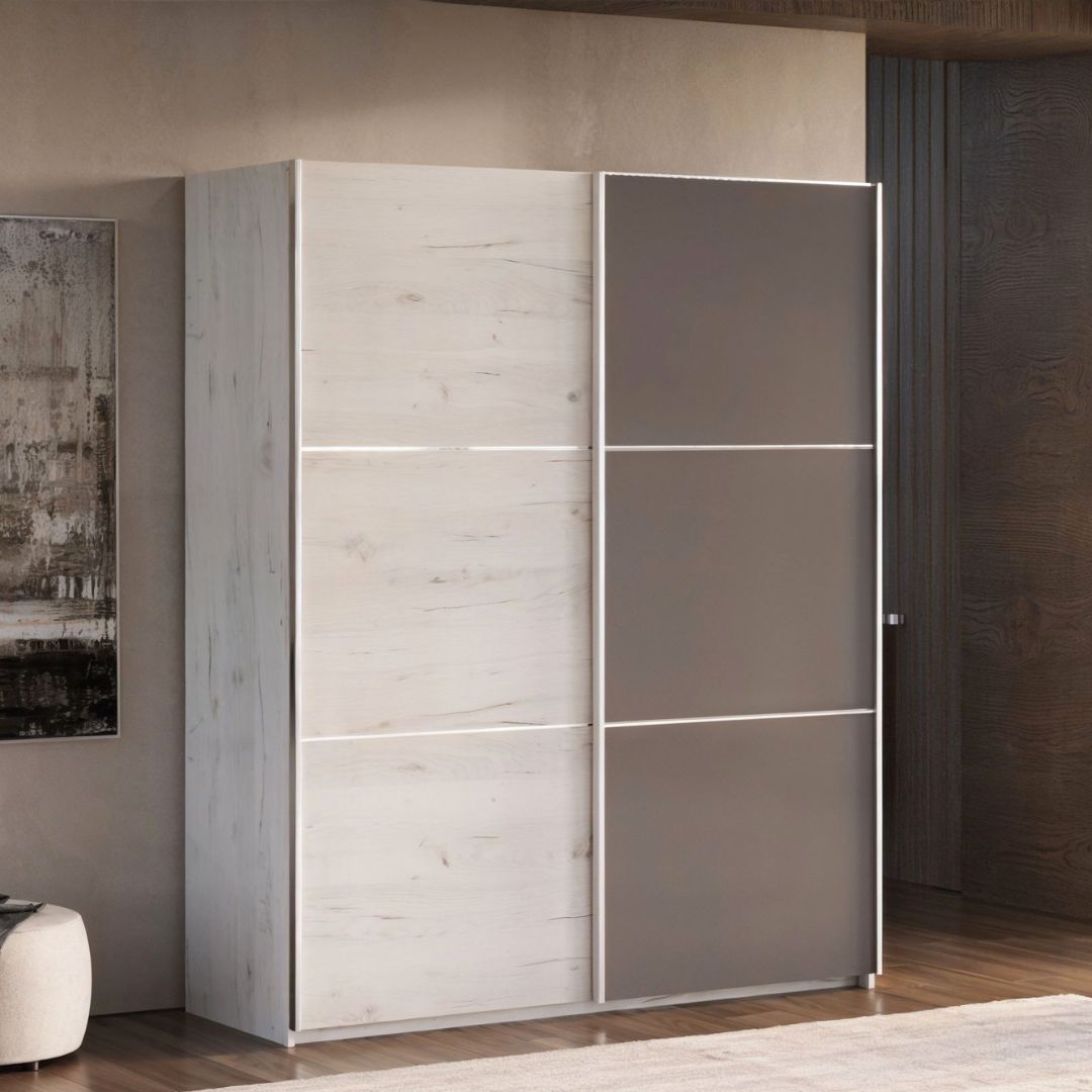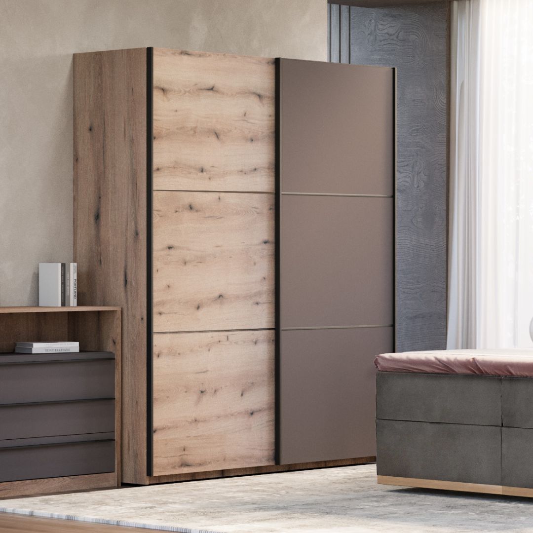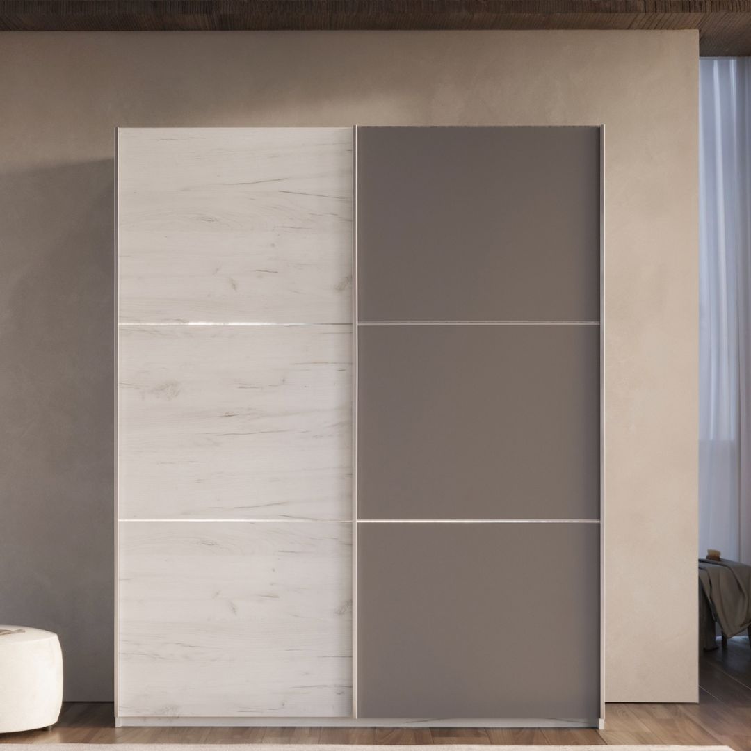 Американски плакар АП е совршен избор за сите кои бараат практично и елегантно решение за складирање. Достапен во три димензии и две комбинации на дезен и боја, овој модел нуди можност за прилагодување според вашиот простор и стил.