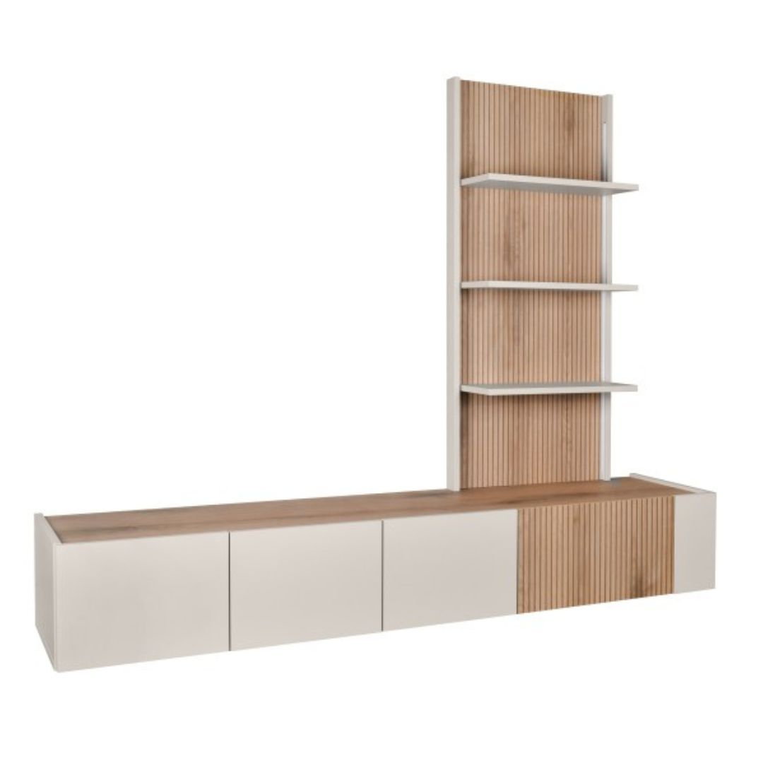 Двата елемента може да се комбинираат за комплетен модуларен изглед или да се постават поединечно во зависност од просторот и стилот на уредување. Изработени од квалитетен плочест материјал со меламинска површина, отпорни на гребење и влага, со висок квалитет на обработка и стабилна конструкција.