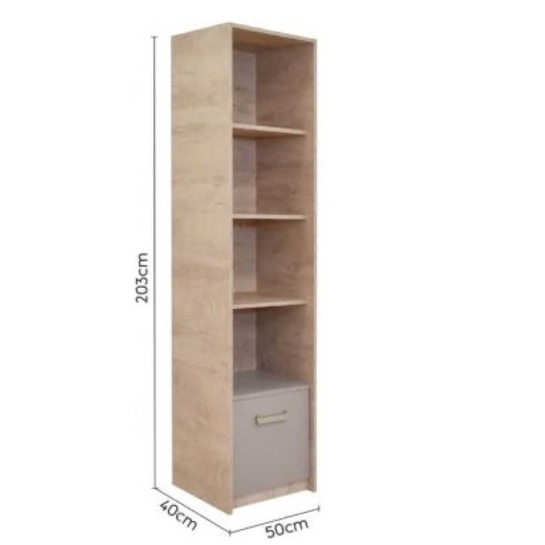 Витрината Киндер 1В е практичен и функционален елемент од колекцијата за детска соба Киндер, дизајниран да обезбеди дополнителен простор за складирање и уредно организирање на детските работи. Благодарение на своите компактни димензии, оваа витрина лесно се вклопува во различни простории, без да зазема многу простор.
