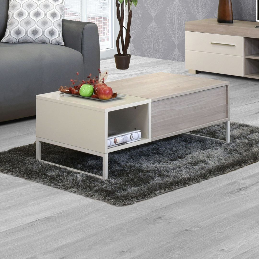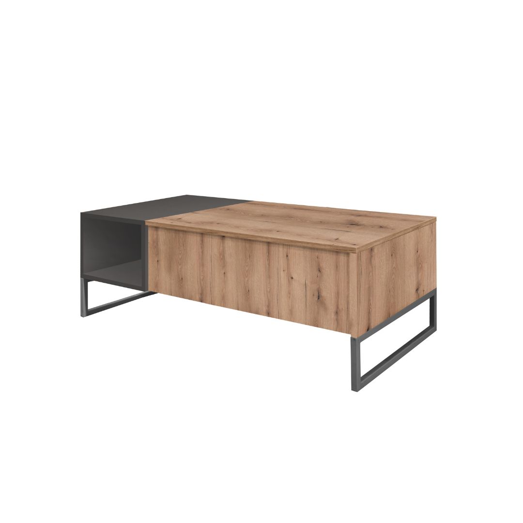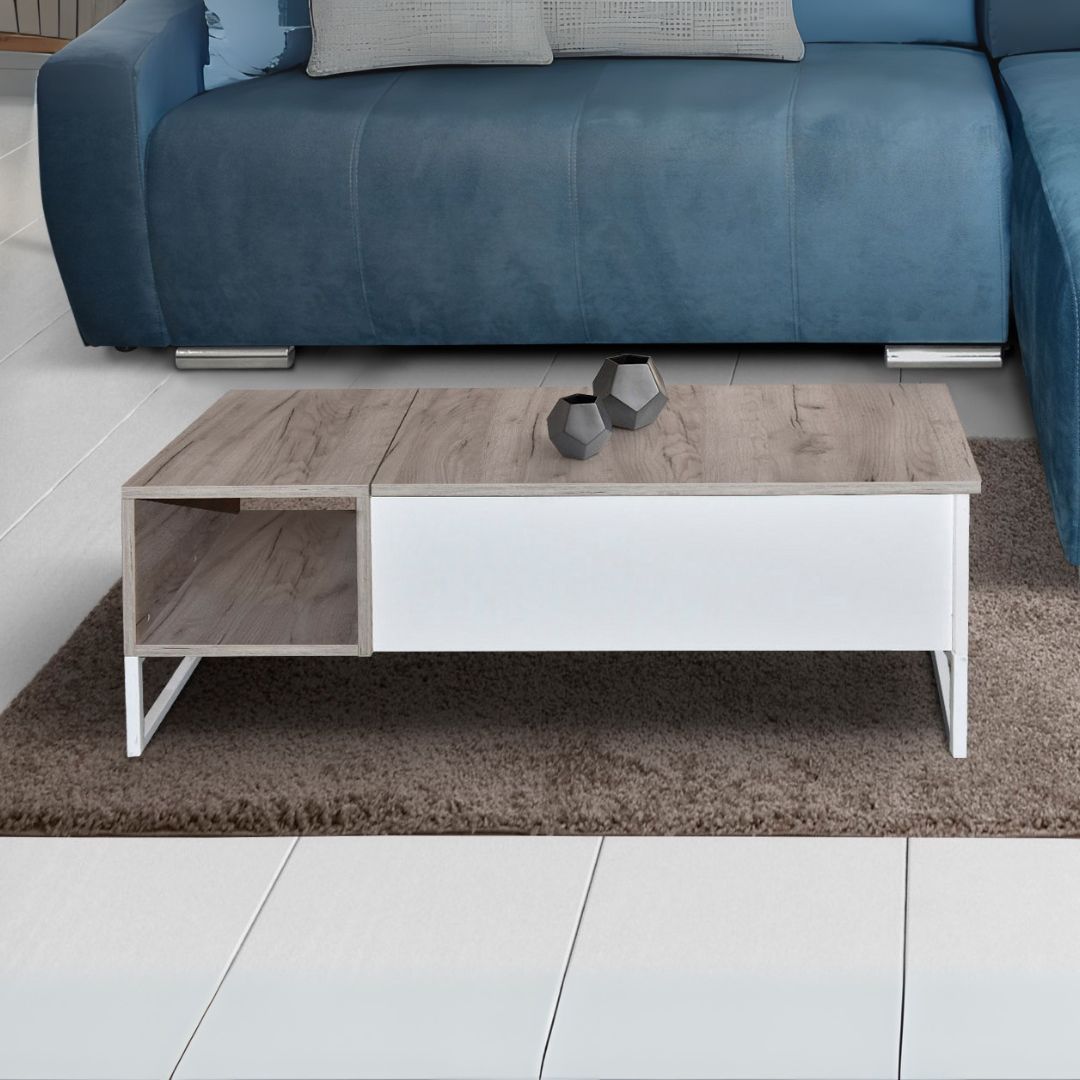 Изработена од квалитетни материјали, оваа маса нуди стабилност и издржливост за секојдневно користење. Погодна е за поставување пијалаци, книги или декоративни елементи. Благодарение на компактната форма и неутралните бои, совршено се прилагодува и во помали простори, создавајќи уреден и современ амбиент.