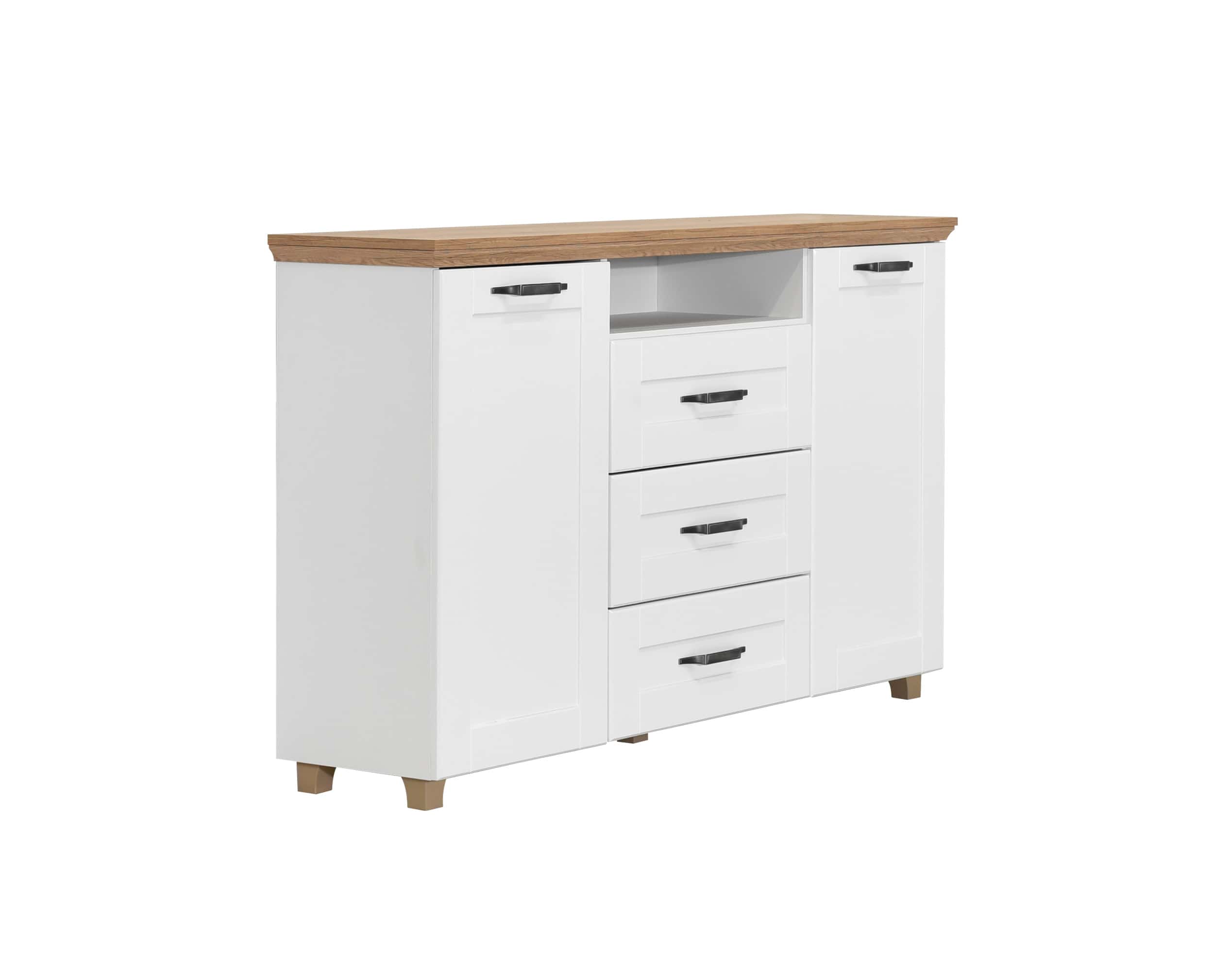 Стилска и издржлива комода „Контемпо“ во модерни дезени артисан сиво и артисан бело. Изработена од квалитетен МДФ со фолија и иверка, со метални рачки кои додаваат елеганција и практичност. Совршена за организирање и декорирање на вашиот простор.