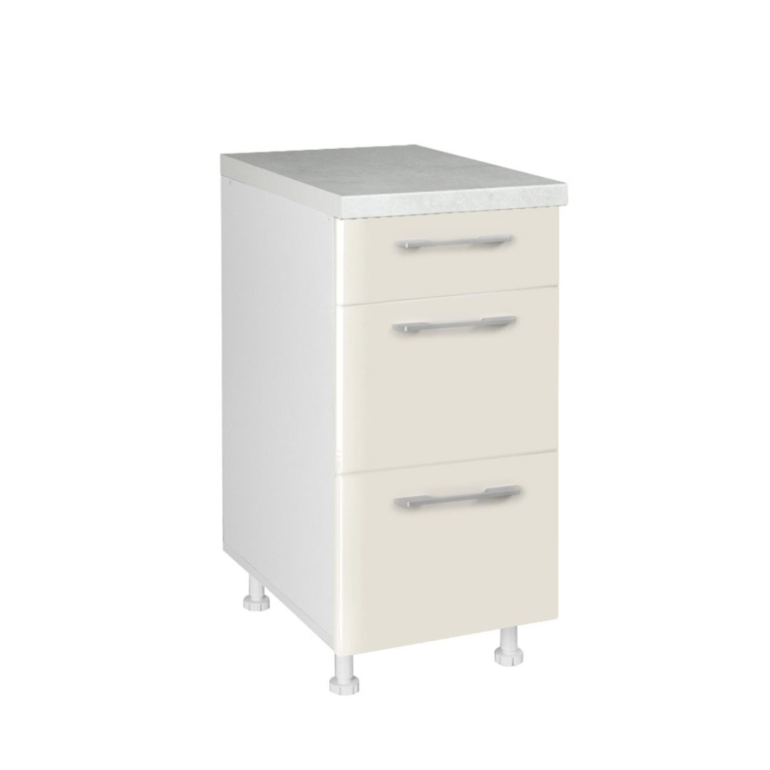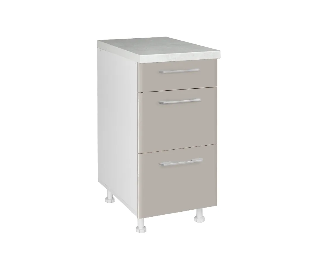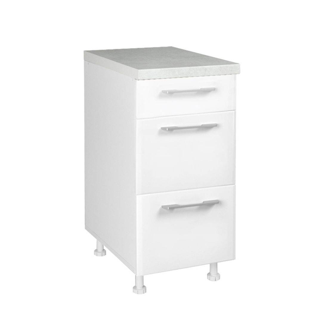 Кујнскиот елемент МДФ Д40 3Ф Б е идеално решение за сите што сакаат уредена, практична и модерна кујна. Со три пространи фиоки, овој елемент овозможува организирано складирање на прибор, мали кујнски алати, крпи и други секојдневни потреби. Неговата компактна ширина го прави совршен за секоја кујнска поставеност – од мали до поголеми простори.