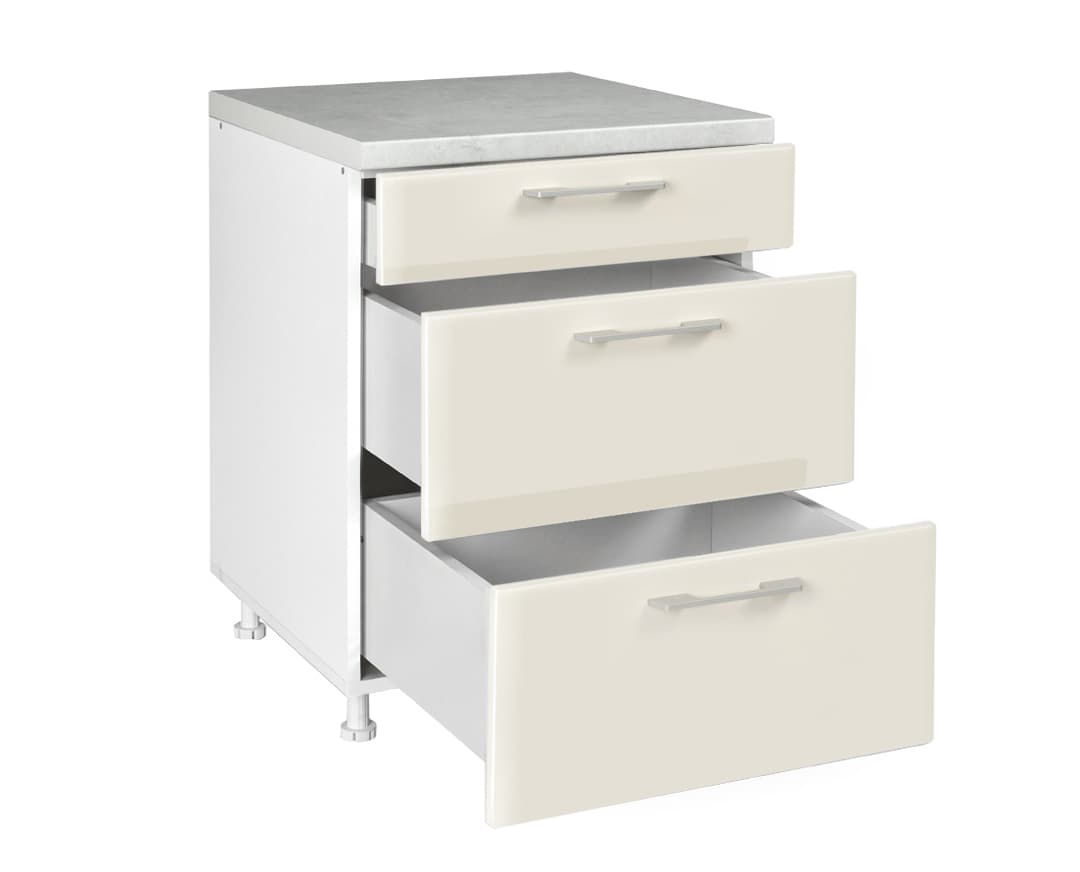 Со димензии 60 × 60 × 85 cm, МДФ Д60 3Ф Б нуди значителна корисна површина и го максимизира кујнскиот простор. Трите функционални фиоки овозможуваат оптимална организација, лесен пристап и поголема прегледност.