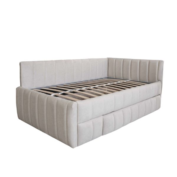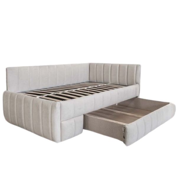Лежај Астра – модерен, удобен и практичен со функција за спиење и складирање. Совршен избор за современ дом – мултифункционално решение што нуди удобност, практичност и модерен изглед во едно. Со елегантно тапацирaни страни, латофлекс механизам за оптимална поддршка и фиока за складирање, е идеален избор за секоја детска или тинејџерска соба.