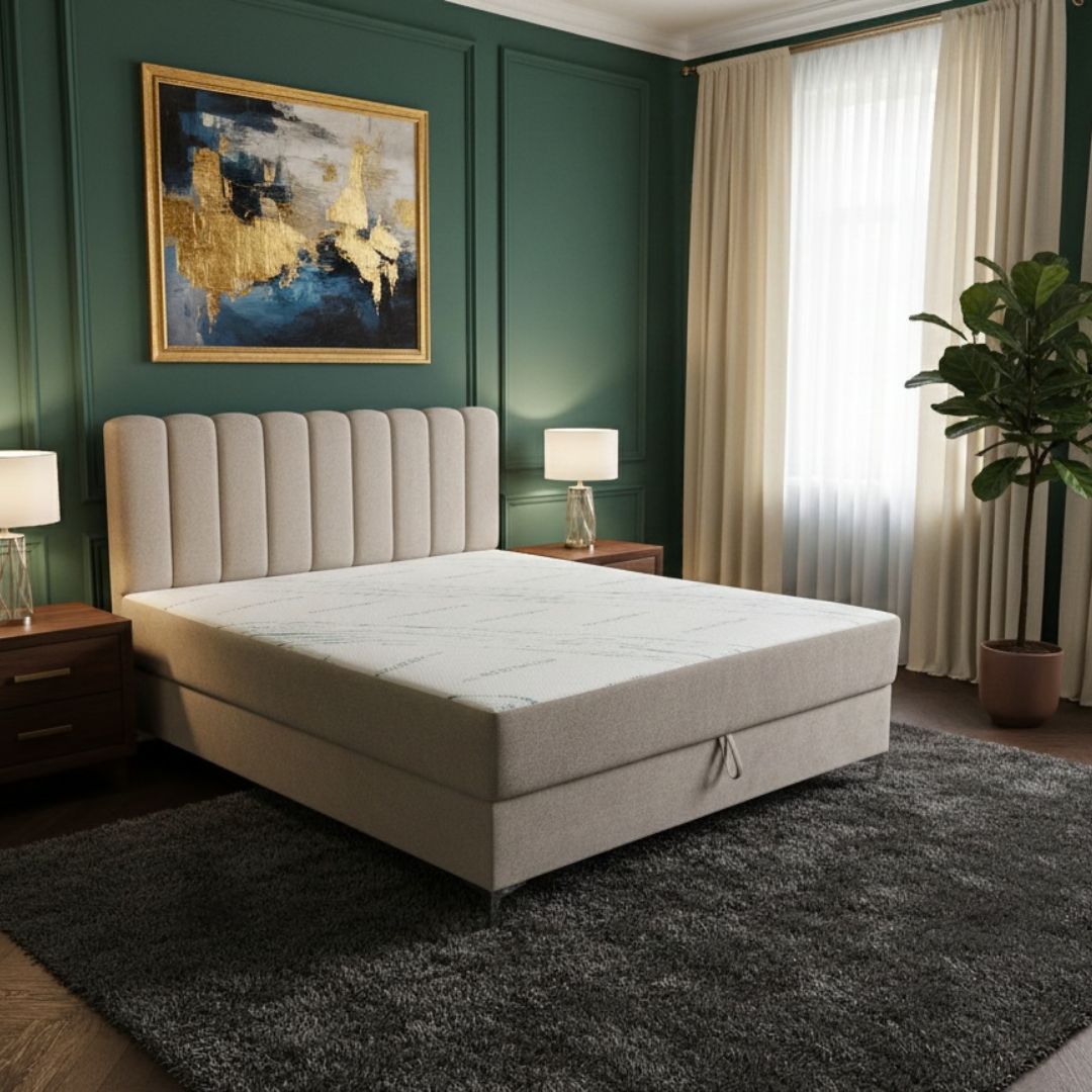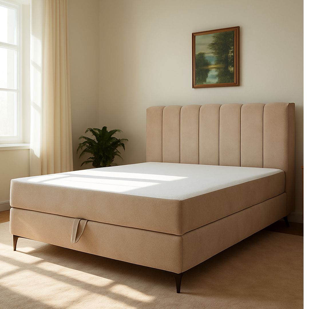 Дополнителната практичност ја обезбедува механизмот со лифтомат, кој овозможува лесно и едноставно користење на пространата кутија за складирање под душекот. Со модерен дизајн и висококвалитетни материјали, лежајот Меги е совршен додаток за секој дом.