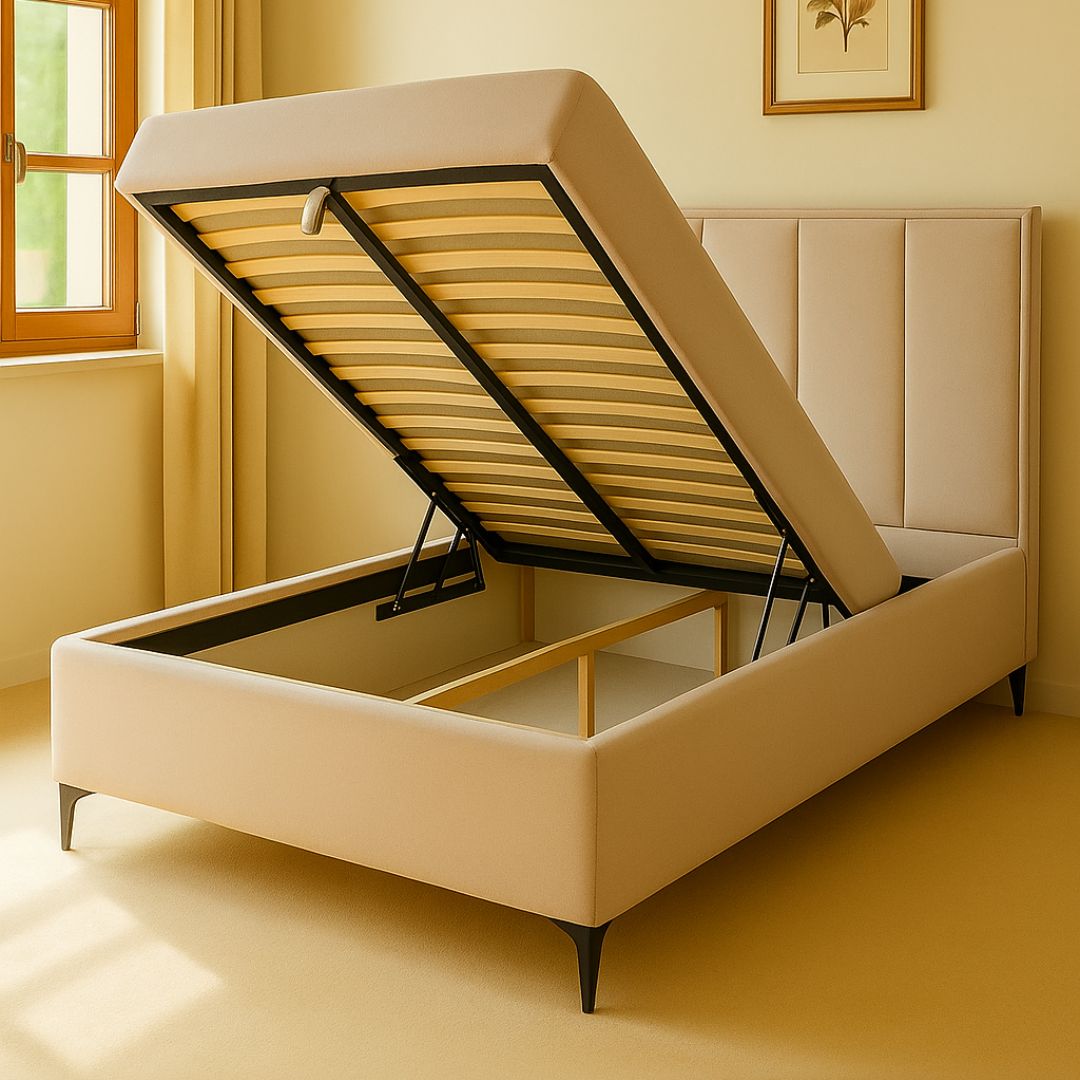 Во основата на лежајот се наоѓа пространа кутија за складирање, совршена за организирање постелнина, ќебиња, перници и други предмети. Пристапот до складишниот простор е едноставен и удобен благодарение на латофлекс механизам со лифтомат, кој овозможува лесно подигнување на основата.