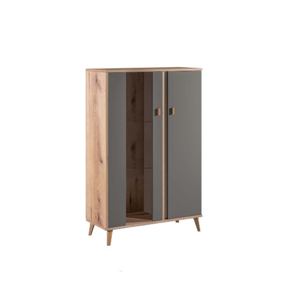 Ниската витрина Порто е совршен спој на естетика и функционалност. Со својата висина и длабочина, таа е идеална за помали ѕидни површини, без да жртвува простор за складирање. Одлична е за изложување на книги, чаши, декорации или лични предмети, и лесно се комбинира со останатите елементи од истата серија.