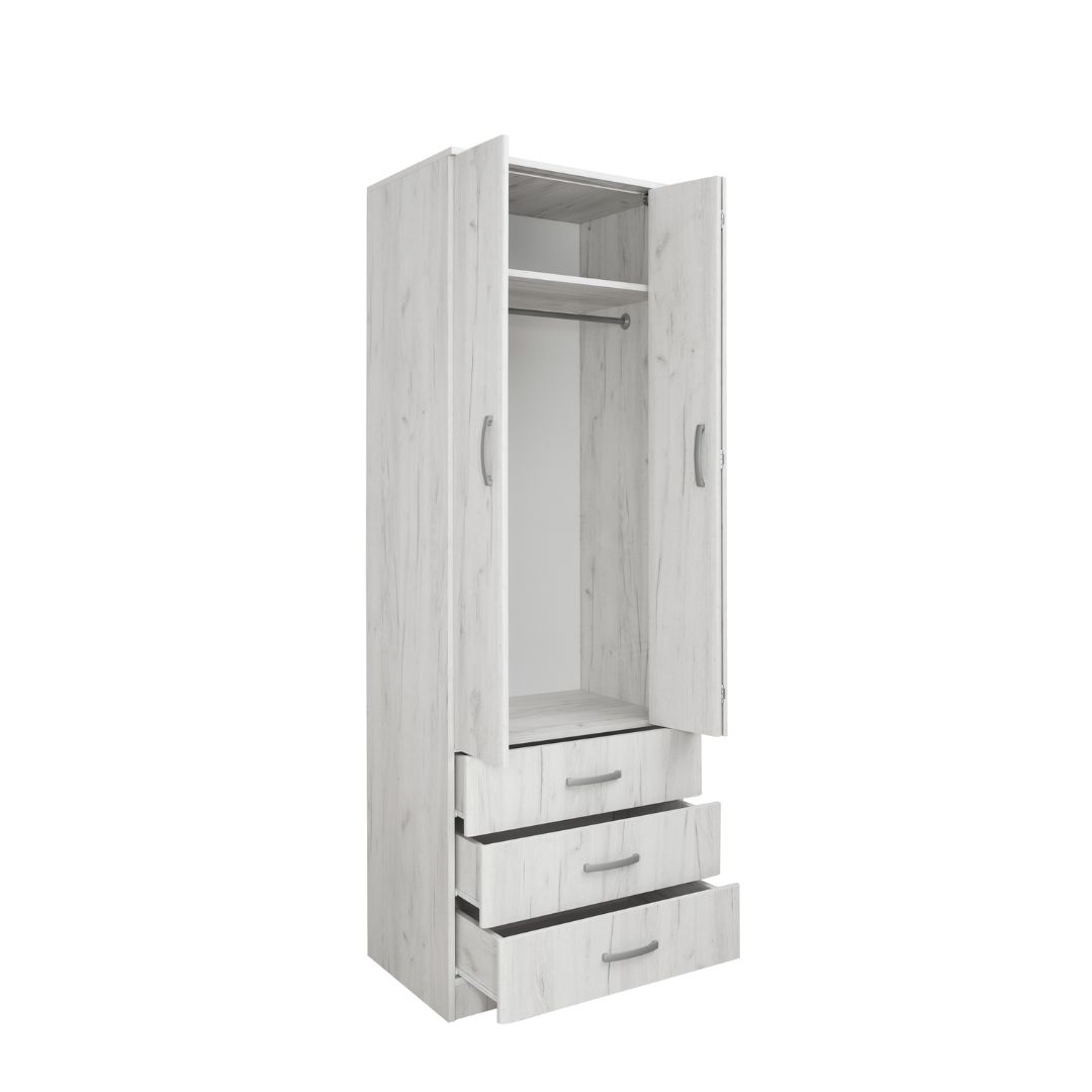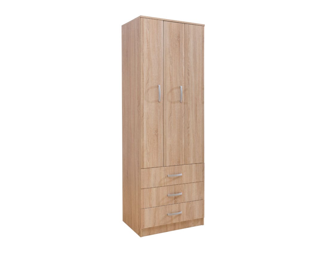 Дополнително, овој модел е опремен со три вградени фиоки, кои обезбедуваат дополнителен простор за складирање на облека, додатоци и други предмети. Вратите се изработени со постформинг обработка, што гарантира трајност, елегантен изглед и лесно одржување.