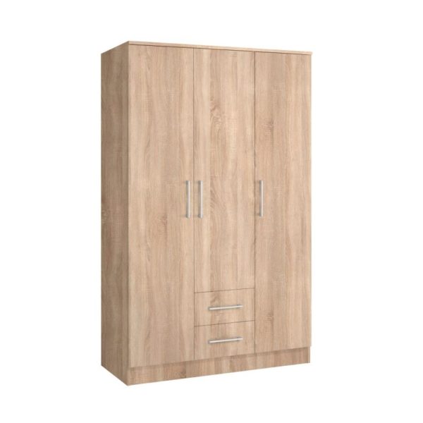 Ормар Ива 3К2Ф – просторен триделен ормар со лост, полици и 2 фиоки, идеален за практично и стилско складирање во спална или детска соба.