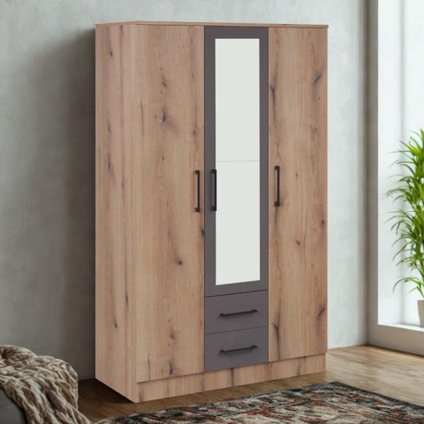 Ормар Ива 3К2ФО – триделен, просторен и модерен ормар со лост, полици и можност за огледало, идеален за уредно складирање во секоја соба.