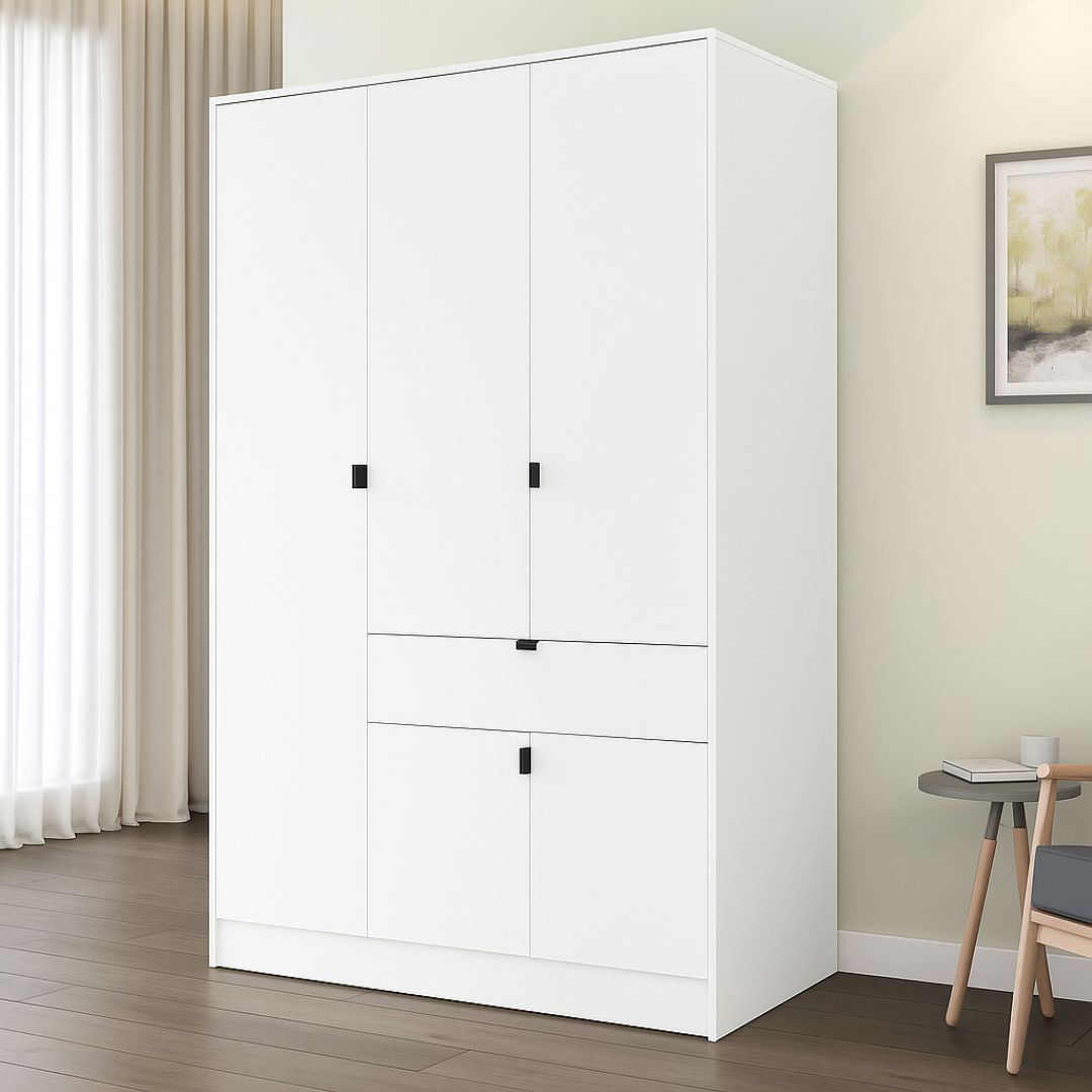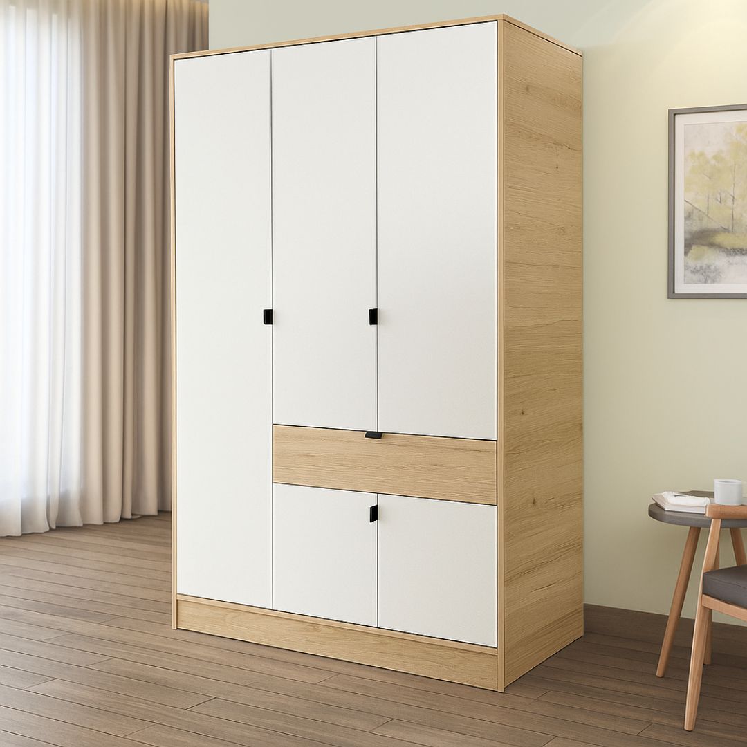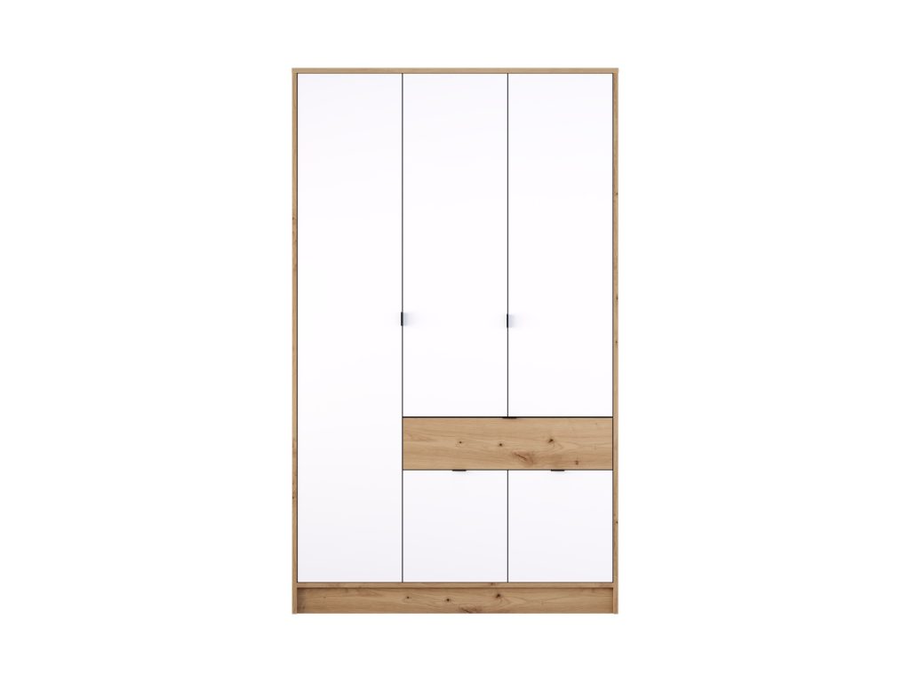 Овој плакар е најпопуларната големина од серијата, која нуди одличен баланс помеѓу капацитет за складирање и просторна економичност. Со три врати, широк распоред на полици и удобен дел за облека на закачалки, овој модел е идеален за брачни спални или гардеробери. Дополнителната фиока, овозможува поедноставна и поефикасна организацијата.