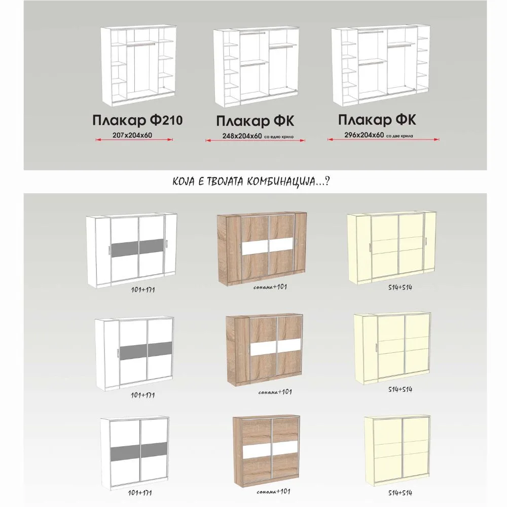 Плакар Фк – модерен лизгачки плакар со голем капацитет, дополнително крило со полици и избор на декори, идеален за максимално искористување на просторот.