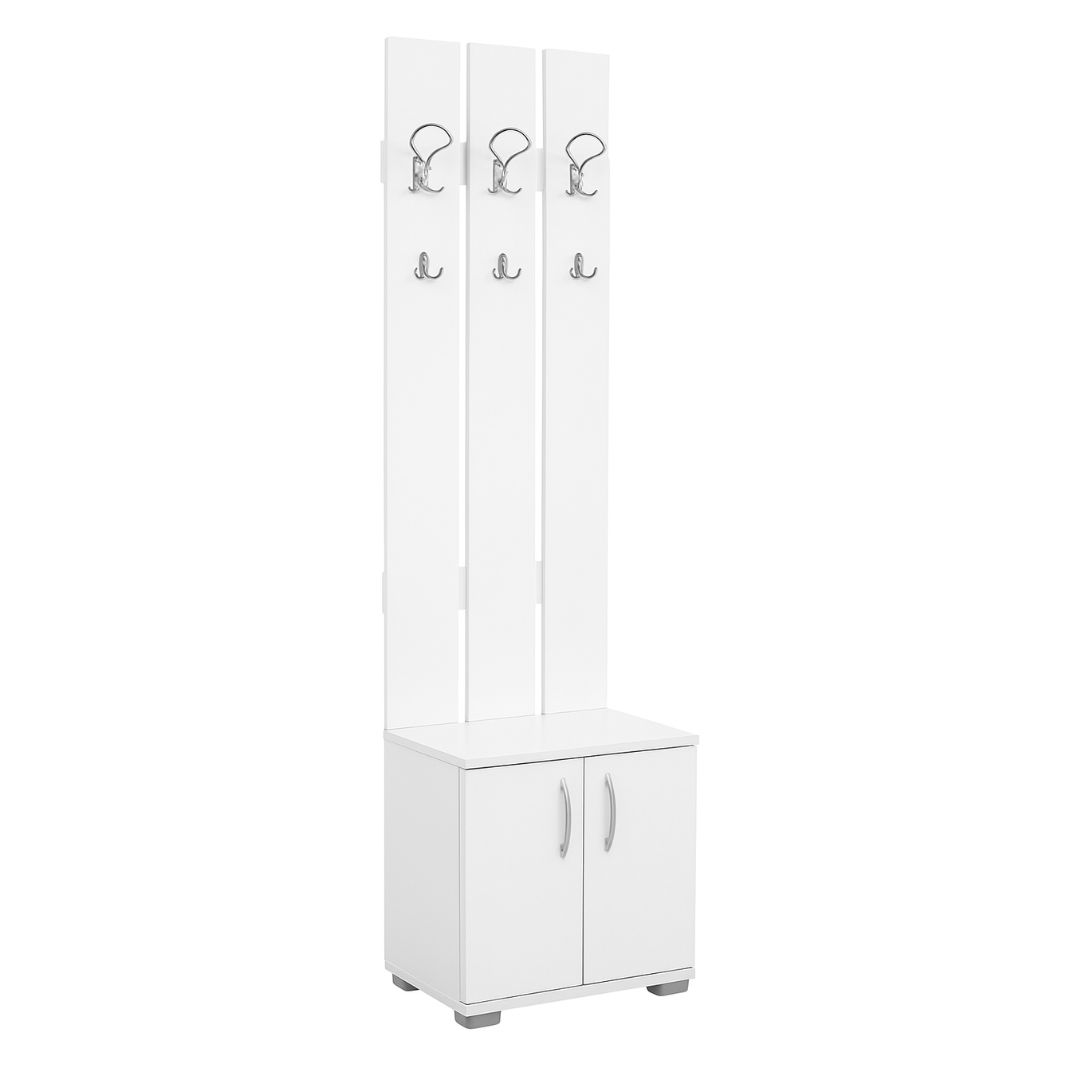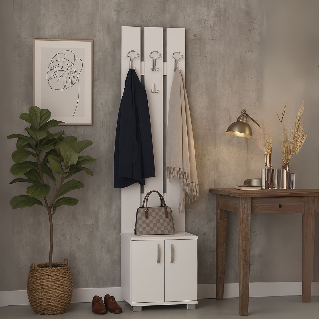 Претсобјето Аполон Па2 е совршено решение за уредување на влезниот простор. Со својот модерен и функционален дизајн, овој комплет содржи три вертикални закачалки за јакни и чанти, долен шкаф со две врати за складирање. Изработено е од висококвалитетна иверка со дебелина од 18 мм, со постформинг обработка на вратите – што обезбедува долготрајност и лесно одржување. Неутралната бела боја се вклопува во секој ентериер – од модерен до класичен.
