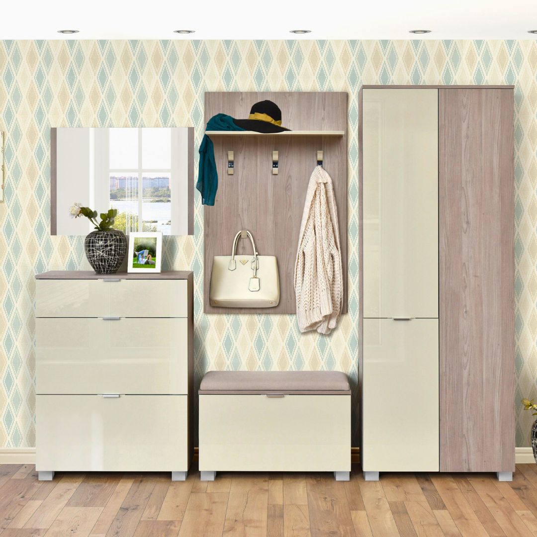 Претсобје Елеганс сет 7 песок сјај внесува светлина, чистина и современа префинетост во влезниот простор.