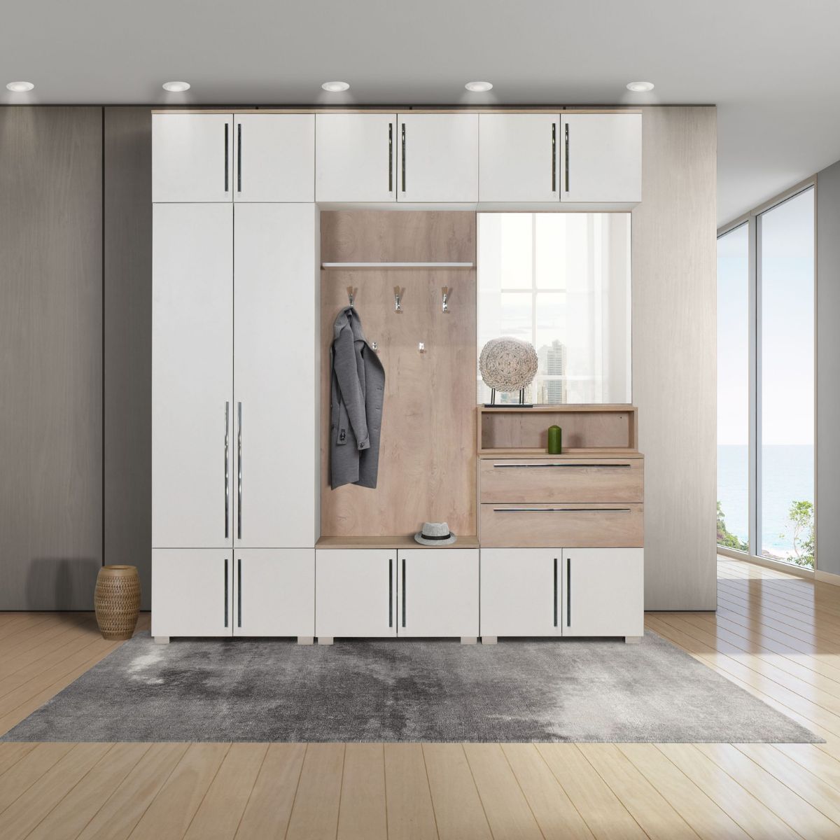 Претсобје Леонидас сет 2, бело/премиум храст