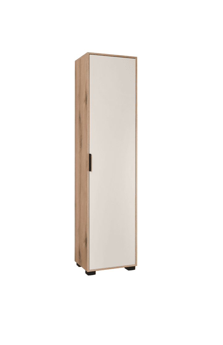 Ормар Смарт 50 со компактни димензии 50 x 38 x 205 cm е идеален за организирање на облеката и додатоците во вашиот претсобен простор. Неговата модерна и елегантна форма овозможува максимална искористеност на просторот, без да го загрози стилот.