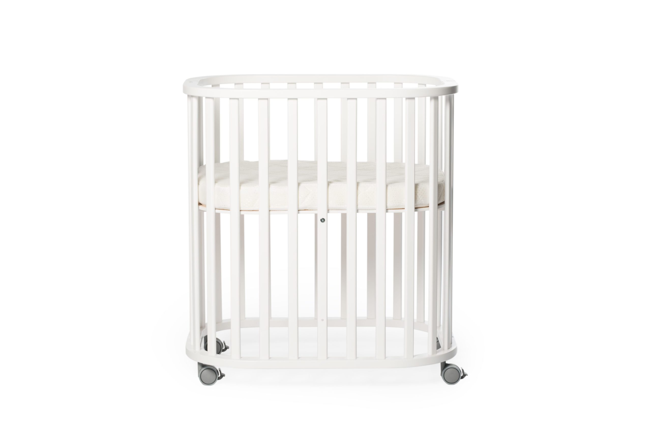 Во оваа најрана фаза, на вашето бебе му треба најмногу внимание и интимност. Креветчето се поставува во најмалата форма -BABY. Креветчето има висина на душекот поставена на 35 см мерена од горниот раб, што овозможува Вашето бебе да биде лесно достапно и секогаш видливо. BABY креветчето е со димензии должина: 83см, ширина: 66см и висина 90см. Има квалитетни тркала со сопирачки што го прави многу подвижен и лесно поминува низ отворите на секоја врата, а сепак безбеден и стабилен каде што ќе го ставите. Оставете го бебето да биде што повеќе со вас во тие први денови, а тоа нема да биде проблем со подвижноста што ви ја овозможува креветчето.