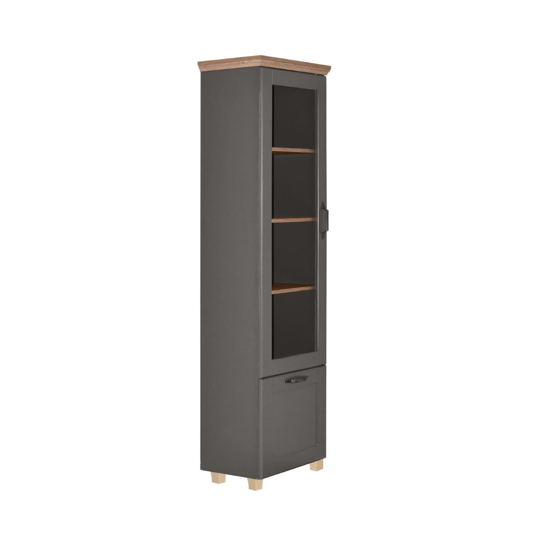 Стаклена витрина висока Контемпо – елегантна и стабилна, идеална за изложување и декор. Достапна во дезени Артисан бело и Артисан сиво. Совршен избор за сите кои сакаат модерен, уреден и инспиративен дом