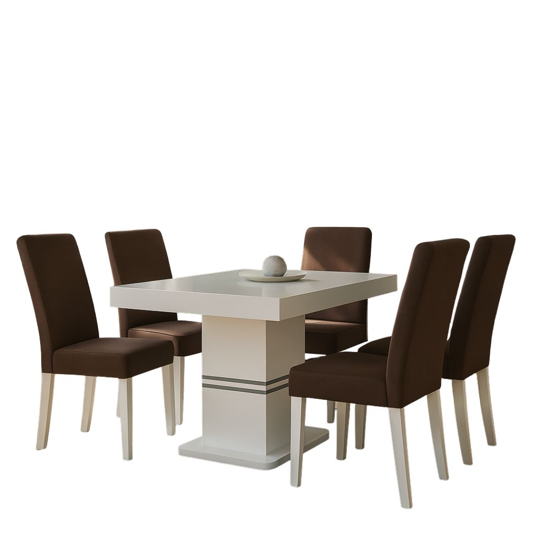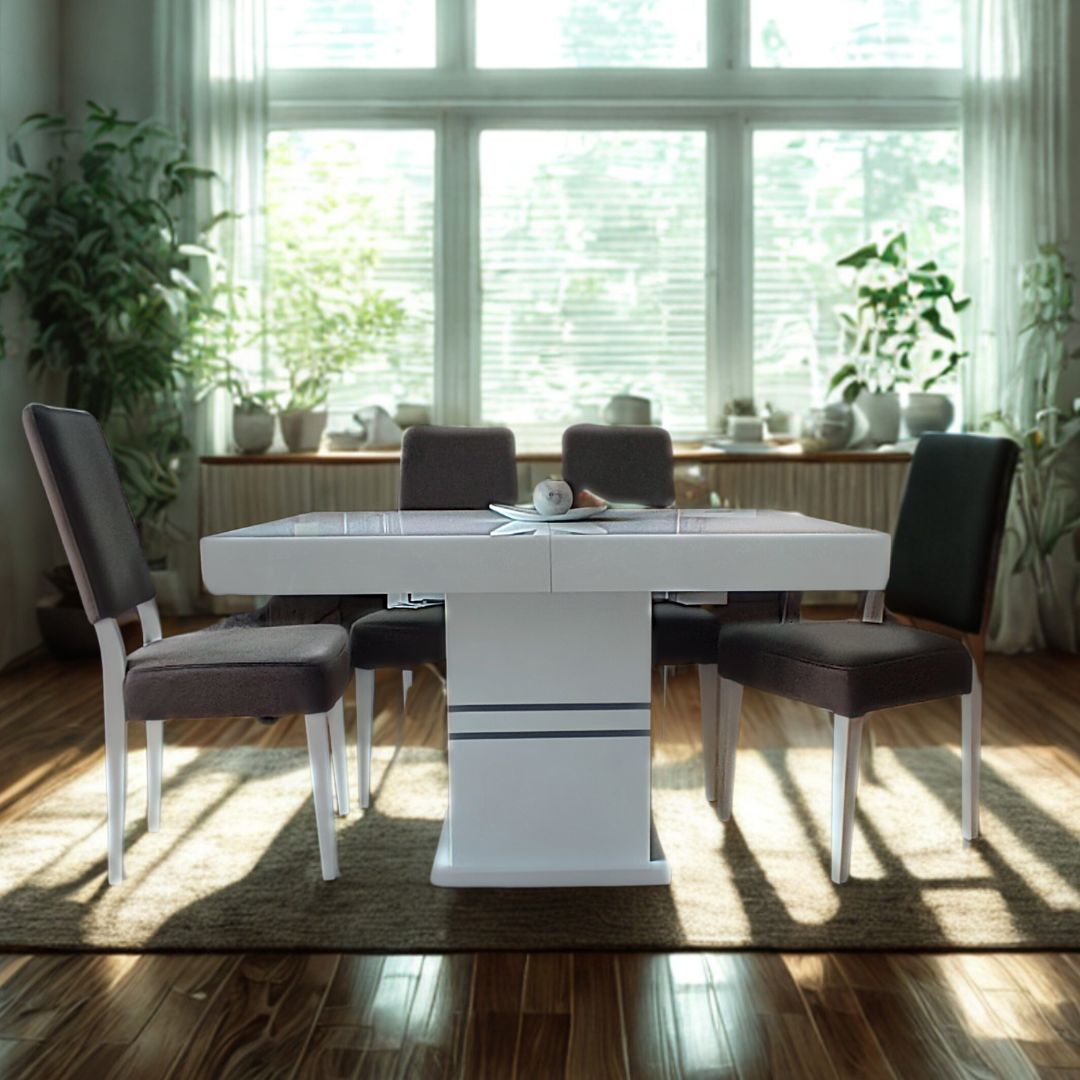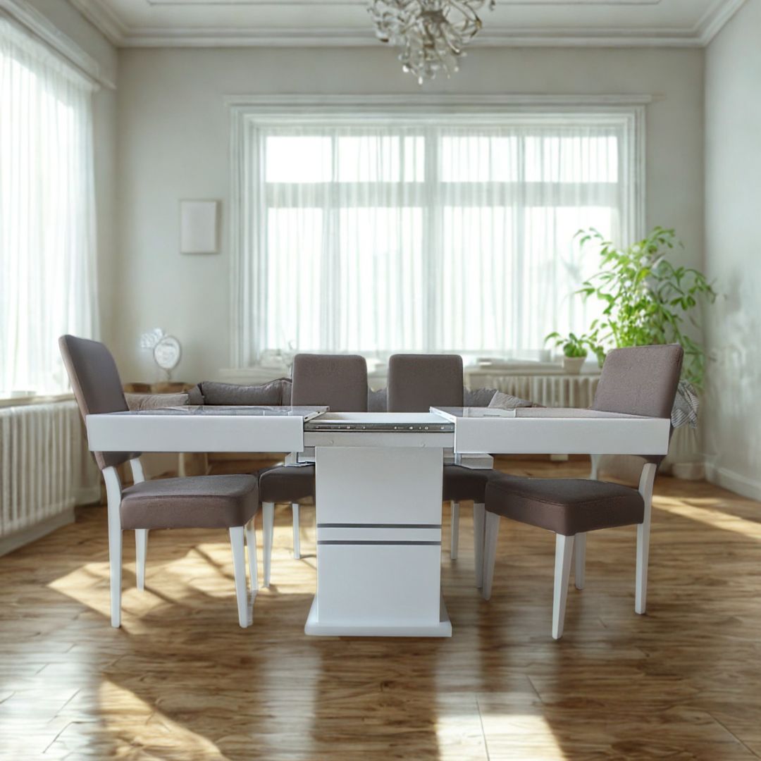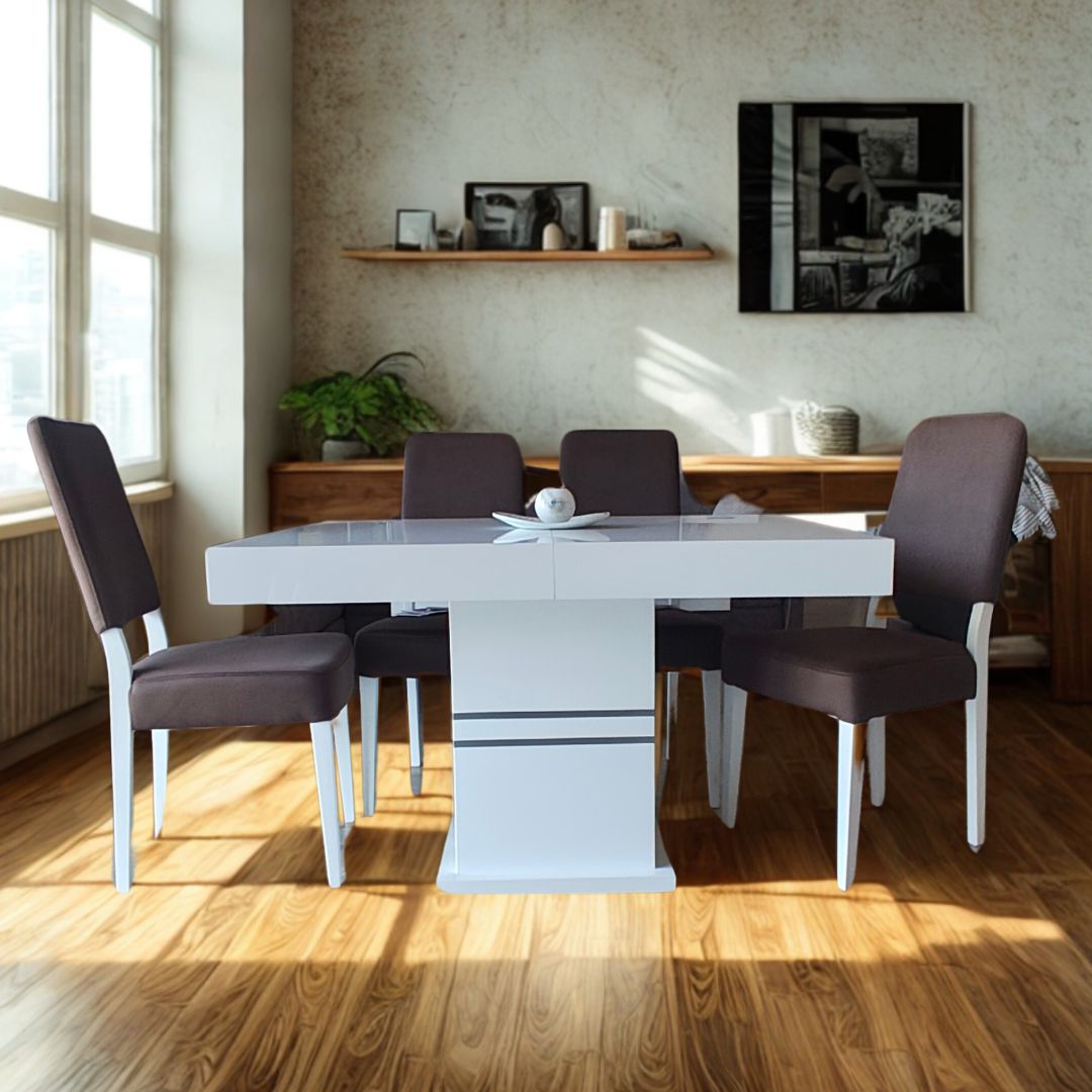 Трпезариска маса СФ131 е совршен избор за оние кои сакаат да комбинираат модерен изглед, практичност и издржливи материјали. Со димензии од 120×90×76 см и механизам за продолжување од +40 см, лесно се прилагодува од секојдневна употреба до поголеми семејни собирања и свечени пригоди.