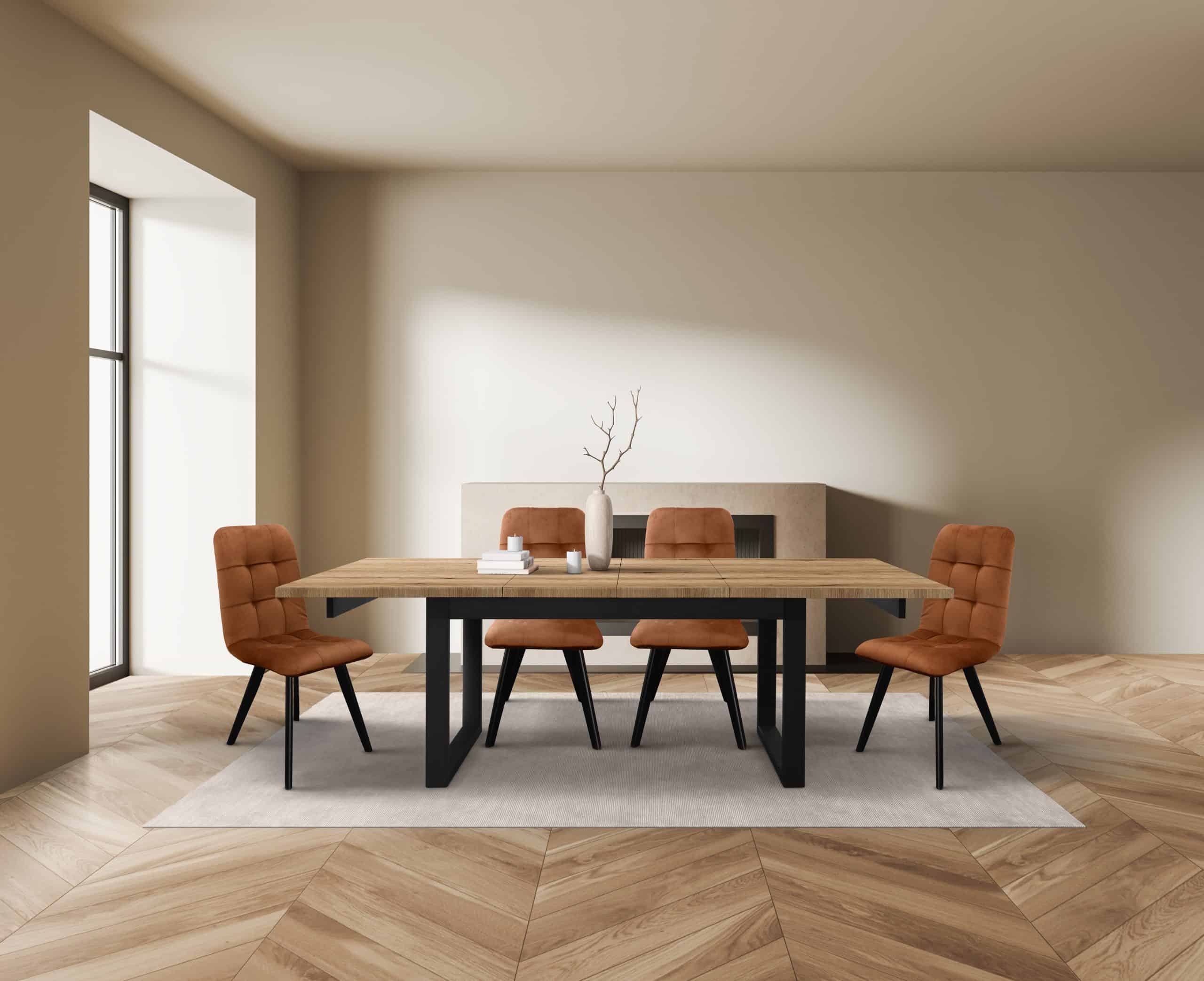 Базната димензија е 90×160×77 см, но благодарение на двата продолжетока од по 40 см, лесно се трансформира во голема маса со вкупна должина до 240 см – идеална за поголеми собири или свечени вечери. Стабилноста и практичноста се на врвно ниво, што ја прави оваа маса совршен спој на дизајн и функционалност.